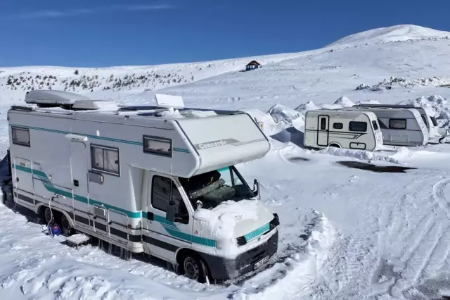 Türkiye'nin önemli kayak merkezlerinden Erciyes, kayak yapmak isteyen karavan tutkunlarını da misafir ediyor.