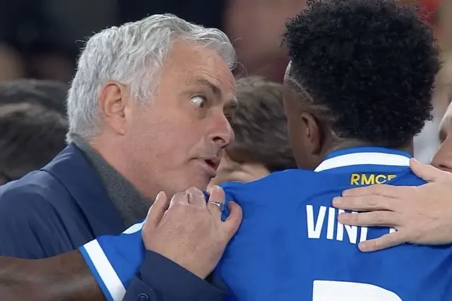 Sahaya geri dönen Vinicius Jr, bu kez de hakemin yanına doğru koşarak Benficalı futbolcu Gianluca Prestianni'nin kendisine 'maymun' dediğini ifade etti. Mücadele yaklaşık 10 dakikalık duraklamanın ardından yeniden başladı ancak Benfica taraftarları maç başladıktan sonra Vinicius Junior'u ıslıklamaya devam etti.