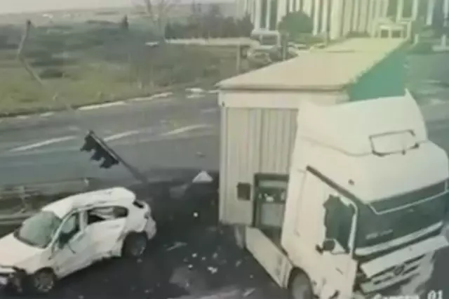 Tekirdağ'da kırmızı ışık ihlali yapan tırın otomobil ile çarpıştığı anlar kameraya yansıdı. Ağır yaralanan otomobil sürücüsü hastaneye kaldırıldı. Kaza, Ergene ilçesi Velimeşe OSB 6. Yanyol ile 3. Yanyol'un ışıklarda birleştiği noktada meydana geldi.