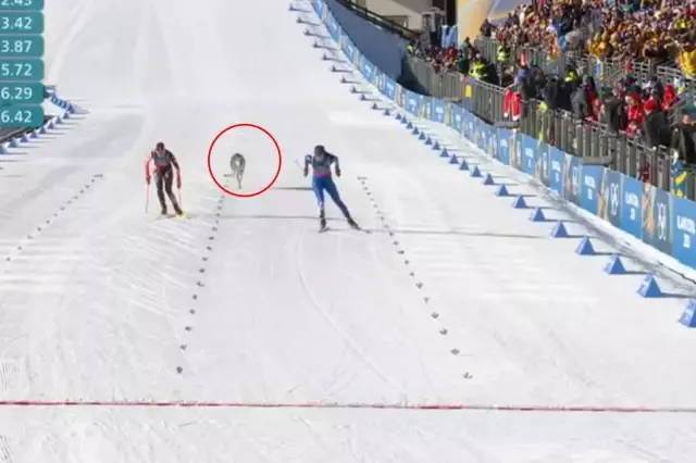 Kış Olimpiyatları'nda yarış sırasında piste giren bir kurt, hızla bitiş çizgisine doğru koşarak organizasyona damga vurdu.