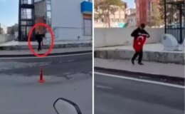 14 yaşındaki çocuk yerde gördüğü Türk bayrağını öperek kaldırdı