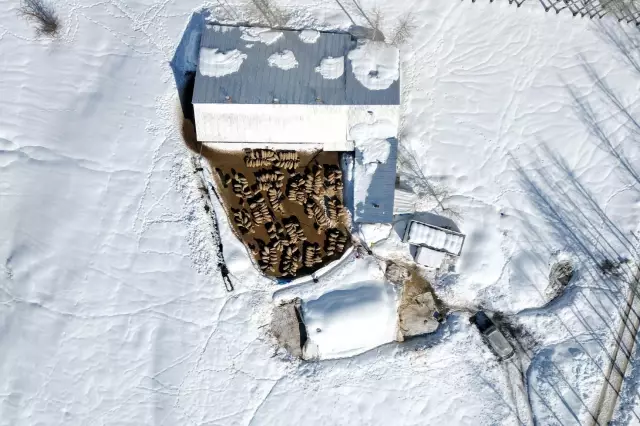 Kış aylarında kar, tipi ve dondurucu soğuğa rağmen her gün hayvanlarının bakımını yaptığını belirten Feyat Polat, "Çalışmak için gittiğim İstanbul'dan memleketime geri döndükten sonra hayvancılık yapmaya karar verdim. Devlet destekli proje kapsamında 100 koyun aldım. 4 yıl içinde bu sayıyı 680'e çıkardım. 8 çocuğum var. Geçimimi hayvancılıkla sağlıyorum" dedi.