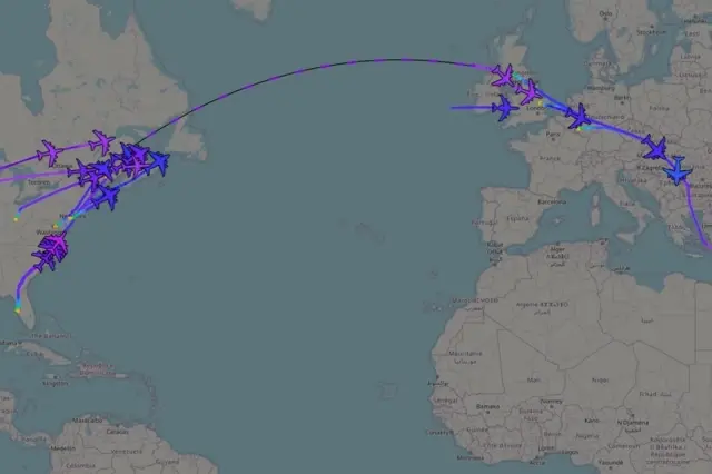 Özellikle İngiltere'deki RAF Lakenheath üssünden 18 F-35 uçağının tankerlerle birlikte hareket ettiği, ABD'deki Joint Base Langley-Eustis'ten gelen F-22 uçaklarının ise İngiltere'ye ulaştığı görüldü.