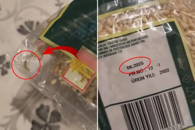 İddiaya göre vatandaşın satın aldığı buğdayın son kullanma tarihi Haziran 2025 olarak yer alıyor. Ürünü kontrol eden tüketici, ambalajın içindeki buğdayın kurtlandığını fark etti. Yaşananları cep telefonu kamerasıyla kaydeden vatandaş, hem ürünün tarihini hem de içerisindeki kurtları görüntüledi.