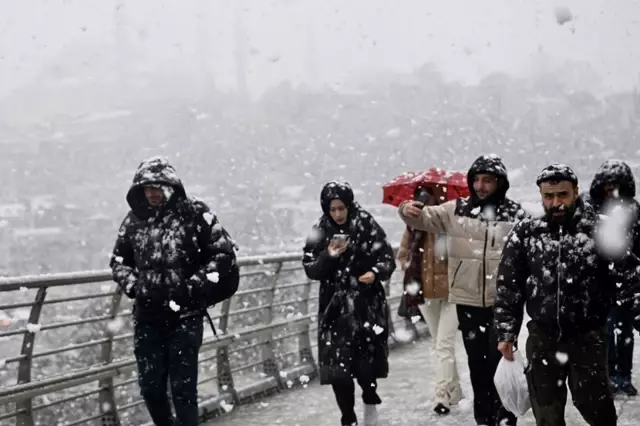 İstanbul'da da pazar günü kış şartları yeniden hissedilecek. Megakentte sıcaklığın 6 dereceye kadar gerilemesi beklenirken, yağışın genel olarak karla karışık yağmur şeklinde görüleceği; yüksek kesimlerde ise yer yer kara dönüşebileceği öngörülüyor.