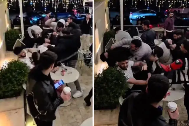Çevredeki vatandaşların ve işletme çalışanlarının araya girmesiyle kavga güçlükle sonlandırıldı. O anlar ise kafede bulunan bir kişinin cep telefonu kamerasına anbean yansıdı. Olayla ilgili inceleme başlatılırken, işletmede maddi hasar meydana geldi.