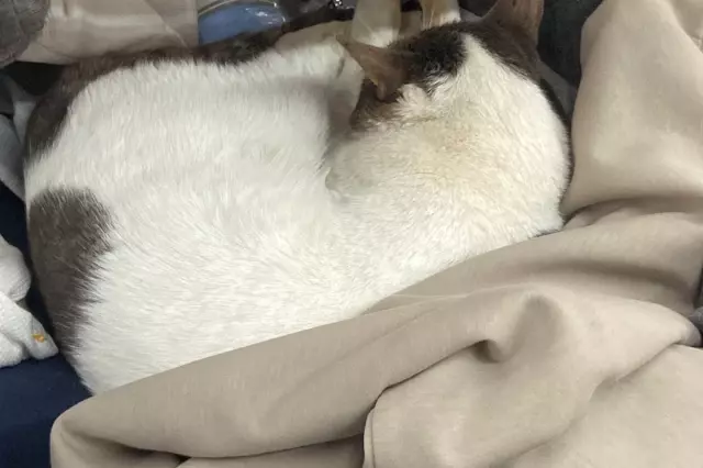 Reyondaki kıyafetlerin arasına girerek uyuyan sokak kedisi, bir müşteri tarafından cep telefonuyla görüntülendi. Kıyafetlerin üzerinde uyuyan kedinin görüntüleri kısa sürede yayılarak binlerce yorum aldı.
