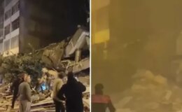 Korku dolu anlar! Depremde hasar gördü, bir anda çöktü