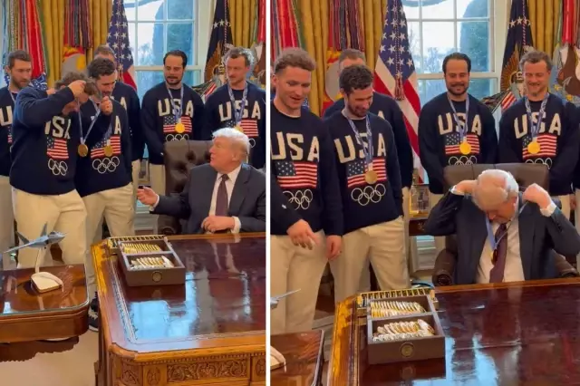 Ziyaret sırasında dikkat çeken bir an yaşandı. Trump, oyunculardan birinin altın madalyasını eline alarak esprili bir şekilde "Geri vermiyorum" dedi. Salonda gülüşmelere neden olan o anlar kısa sürede sosyal medyada yayıldı.
