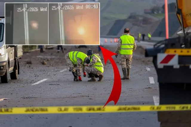 Uçağın düştüğü ve trafiğe kapatılan yol sabahın ilk ışıkları ile görüntülendi. Görüntülerde uçağın düştüğü yolda çukur oluştuğu görüldü.