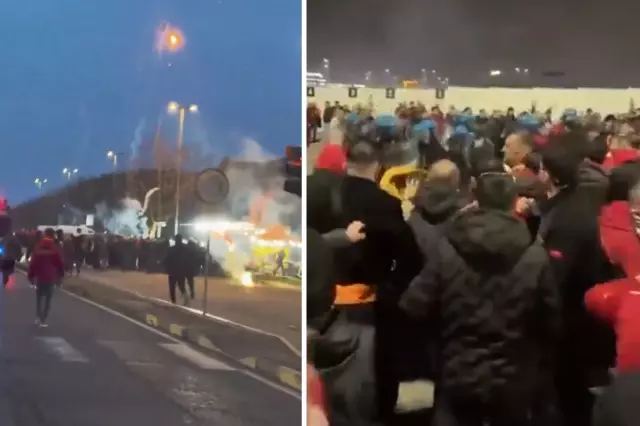 İtalyan polisinin taraftarlarla copla saldırdığı görülürken, birçok havai fişek ve ses bombasının art arda patladığı da taraftar kameralarına yansıdı.