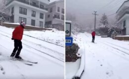 Şehir merkezinde kayak yaptı