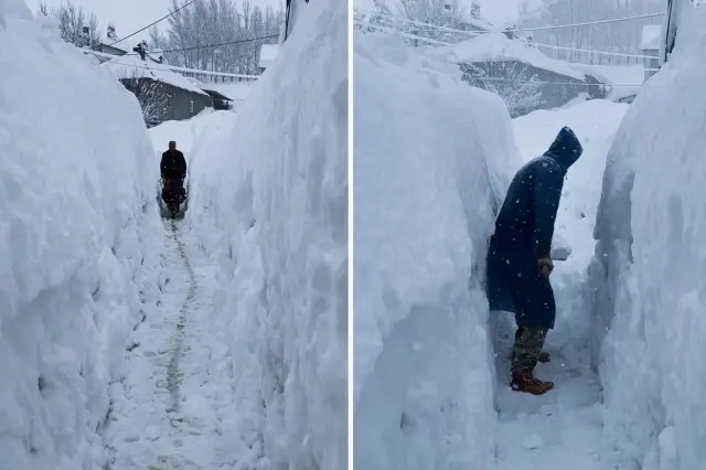 Tunceli'nin Ovacık ilçesine bağlı Koyungölü köyünde etkili olan yoğun kar yağışı, günlük yaşamı olumsuz etkiledi. Kar kalınlığının yer yer insan boyunu aştığı köyde vatandaşlar, evlerinden çıkabilmek için büyük çaba harcadı.