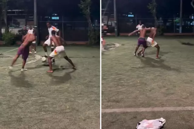 Vasco da Gama forması giyen Marino Hinestroza, arkadaşlarıyla yaptığı halı saha maçıyla gündem oldu. Profesyonel kariyerine milyonlar yatırılan genç futbolcunun, tekmelerin havada uçuştuğu sert bir maçta mücadele etmesi dikkat çekti.