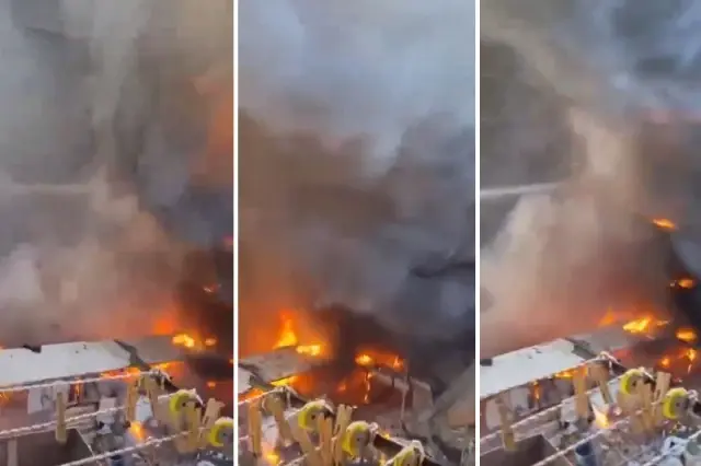 Füzenin düşmesinin ardından terminali alevler sardı. Bölgeden yükselen yoğun duman gökyüzünü kaplarken, çevrede patlamalar meydana geldiği bildirildi. Füze saldırıları sırasında farklı noktalarda da yangınlar çıktığı aktarıldı.