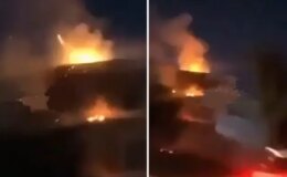 Alevler gökyüzüne yükseldi! İran Bahreyn’deki gökdeleni böyle vurdu