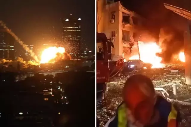 İran, İsrail'e yeni dalga füze saldırısını başlattı. Tel Aviv'de birçok nokta hedef alınırken, alevlerin yükseldiği görüldü.