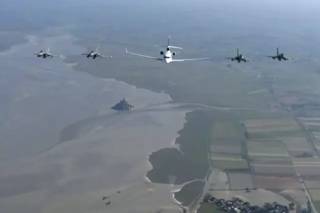 ABD-İsrail ve İran arasındaki savaş sürerken Fransa Cumhurbaşkanı Emmunuel Macron'un nükleer caydırıcılık konuşması için Île Longue'a giderken Dassault Falcon uçağıyla Mont Saint-Michel Körfezi üzerinde 4 Rafale eşliğinde uçması gündem oldu.