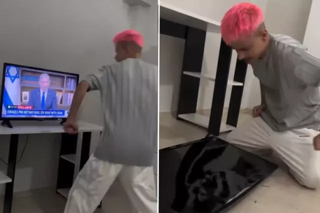 Bir içerik üreticisi, televizyonda İsrail Başbakanı Binyamin Netanyahu'nun konuşmasını izlerken öfkesine hakim olamayarak televizyonu parçaladı. Sosyal medyada gündem olan görüntülerde, genç içerik üreticisinin "Savaşı durdur" diyerek ekrana yumruk attığı ve televizyonu kullanılmaz hale getirdiği görüldü. Ekranı parçalayan genç, televizyonun masadan düşmesine rağmen tepkisini sürdürdü ve bu anları takipçileriyle paylaştı.