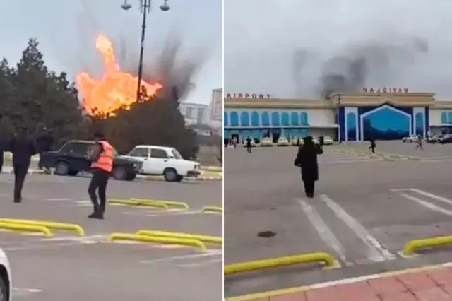 Azerbaycan kaynakları Nahçıvan özerk bölgesindeki havaalanı sınırları içerisine İran'dan gelen füzelerin ve insansız hava araçlarının düştüğünü söyledi.