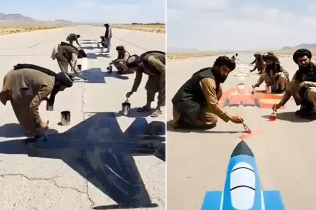İsrail'in İran'da yere çizilmiş Mi-17 helikopter silüetini gerçek sanarak vurduğunun ortaya çıkmasının ardından olay tartışma yaratırken, bugün Afganistan'da yollara ve pistlere uçak ile helikopter resimleri çizilmeye başlanması dikkat çekti.