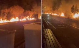 Petrol deposu vuruldu, sızan yakıt otoyol boyunca alev alev yandı