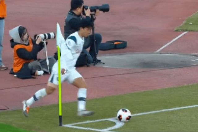 Kore Ligi'nde oynanan bir karşılaşmada yaşanan ilginç anlar futbolseverleri şaşkına çevirdi. Korner kullanmak için topun başına geçen bir futbolcu, tam vuruş yapacağı sırada bir anda kurşun yemiş gibi yere yığıldı.