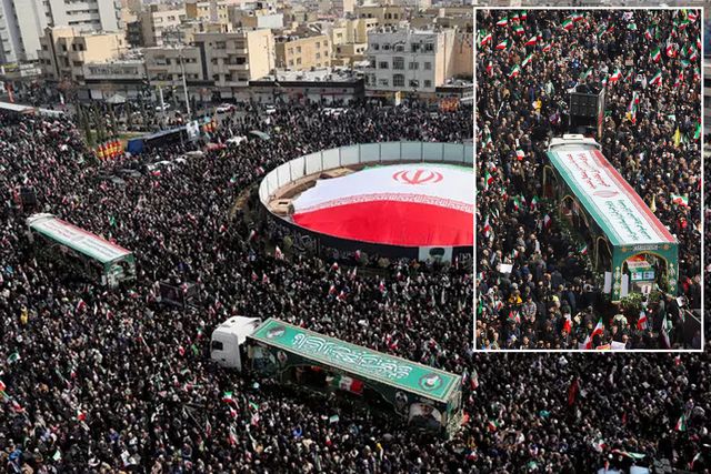 Cenaze törenine mahşeri kalabalık katıldı. On binlerce İranlı İnkılap Meydanı'nda bir araya geldi. Kalabalık hep bir ağızdan ABD ve İsrail aleyhine sloganlar atarak cenaze konvoyuna eşlik etti. Halk cenaze törenini gözyaşları içerisinde takip etti.