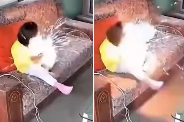 Çin'de akıllı telefonla oynayan bir çocuk ölümden döndü. Telefon aniden patlarken korku dolu anlar evdeki güvenlik kamerasına yansıdı.