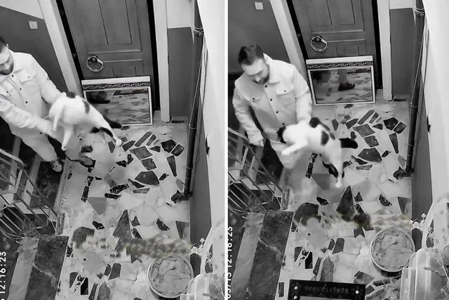 İstanbul'da bir şahıs, apartmanda beslenen kediyi ses yapıyor diye darbedip dışarı attı. Kedinin acı içinde miyavlamaları apartmanın güvenlik kamerasına yansıdı.