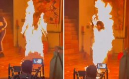 Katy Perry, klip çekiminde alevler içinde kaldı