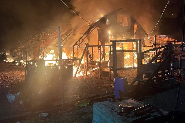 Yangın sonucu çiftlik kullanılamaz hale gelirken, yangının çıkış nedeninin belirlenmesi için inceleme başlatıldı.