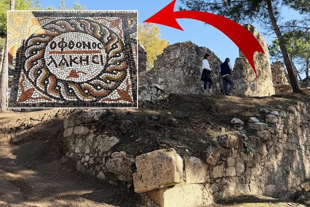 Antalya'nın Alanya ilçesindeki Syedra Antik Kenti'nde, milattan sonra 4 ile 6. yüzyıllara tarihlenen ve "kıskanan çatlasın" ifadesini içeren yaklaşık 15 metrekarelik mozaik ortaya çıkarıldı. Kazı çalışmaları devam ediyor.