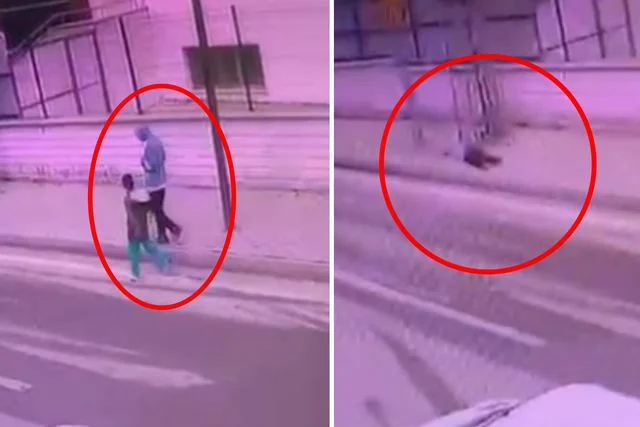 Polis olayla ilgili inceleme başlatırken, olay anı çevredeki bir iş yerinin güvenlik kamerasına yansıdı.