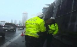 Emniyet şeridinde şoke eden anlar! Polisler anında müdahale etti