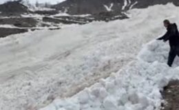 Hakkari’de köy yakınına çığ düşme anı görüntülendi