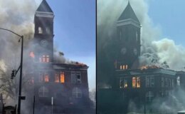 ABD’de 134 yıllık tarihi binada yangın! Saat kulesi çöktü