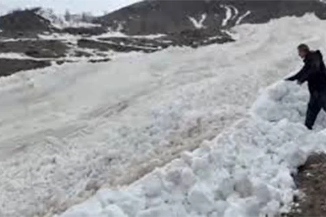 Hakkari'nin Yukarı Akkaya köyü yakınlarında çığ düşme anı, cep telefonu kamerasıyla görüntülendi.