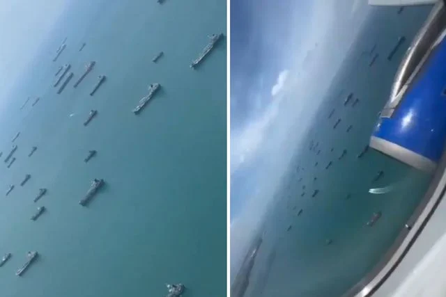 ABD-İsrail'in saldırılarına karşılık İran'ın dünya petrol ticareti için büyük önemi bulunan Hürmüz Boğazı'nı kapatması yeni bir krizi başlattı. Boğazda bekleyen gemilerin son durumu, bölgeden geçen bir uçaktan kaydedildi. Görüntülerde gemilerin sıra sıra beklediği görüldü.