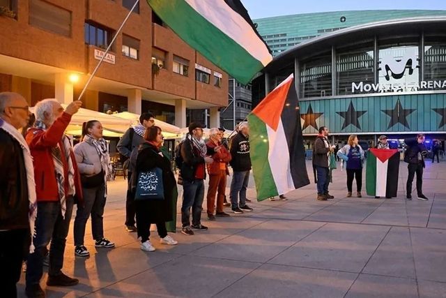 İspanya hükümetinin ve Madrid polisinin görüşleri sonrasında seyircisiz oynanması kararı alınan Real Madrid-Hapoel Tel Aviv maçı öncesinde, Movistar Arena spor salonu önünde İsrail protesto edildi.