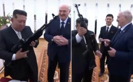 Görüşmeye damga vuran görüntü! Lukaşenko, Kim’e taarruz tüfeği hediye etti