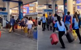 Tayland’da yakıt krizi nedeniyle insanlar ellerinde bidonlarla petrollere akın etti