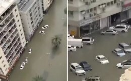 BAE’nin Şarika kentinde şiddetli yağışlar nedeniyle araçlar su altında kaldı