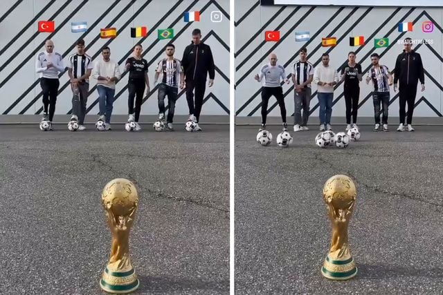 Sosyal medyada içerik üreten bir grup, ilginç bir paylaşımda bulundu. 6 kişiden oluşan bir arkadaş grubu, futbol topunu karşılarında duran Dünya Kupası'nın maketine isabet ettirmek istedi. Aynı anda yapılan vuruşlarda Türkiye'yi temsil eden bir adamın isabet sağladığı, gruptaki diğer kişilerin topu Dünya Kupası'na isabet ettiremediği görüldü. Bu renkli anlar kısa sürede Türk kullanıcılar tarafından binlerce beğeni aldı.