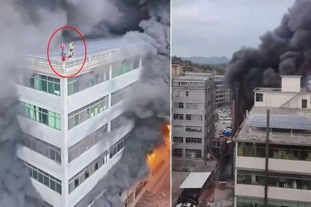 Çin'in Fujian eyaletine bağlı Dehua kentindeki yüksek katlı bir binada büyük çaplı yangın çıktı. Alt katlardan hızla yayılan alevler ve yoğun siyah duman nedeniyle binanın çatısında mahsur kalan siviller, acil durum ekiplerinin operasyonuyla güvenli bir şekilde kurtarıldı.