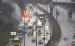 TEM Otoyolu’nda tır yandı, trafikte yoğunluk oluştu