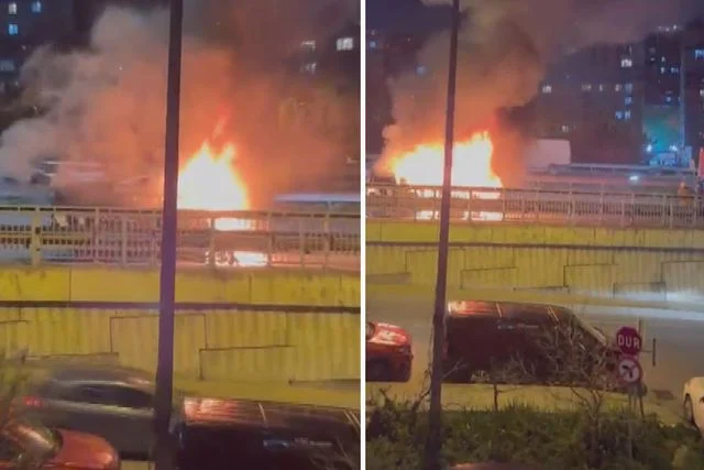 Yangın, saat 21.00 sıralarında Kağıthane Okmeydanı Viyadüğü meydana geldi. Edinilen bilgiye göre, Ali D. idaresindeki 34 THA 34 plakalı ticari taksi, seyir halindeyken sol fardan dumanlar yükseldi. Rüzgarın da etkisiyle aracı alevler sardı. Sürücü, panik içinde aracı yol kenarına çekerek, içinde bir çocuğun da yolcuları tahliye etti.