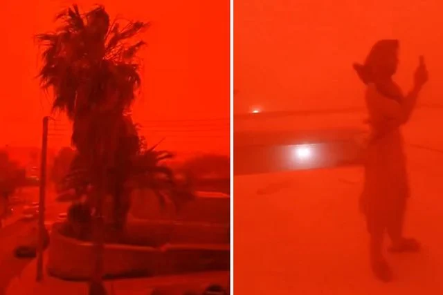 Yunanistan genelindeki kötü hava koşulları devam ederken, Girit Adası'nda gökyüzü Afrika'dan gelen çöl tozu nedeniyle kırmızıya büründü.