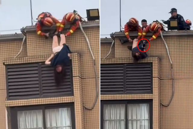 Çin'de bir kadının binadan atlamaya çalıştığı anlar büyük paniğe yol açtı. Olay yerine sevk edilen ekipler, kadını kurtarmak için seferber oldu.