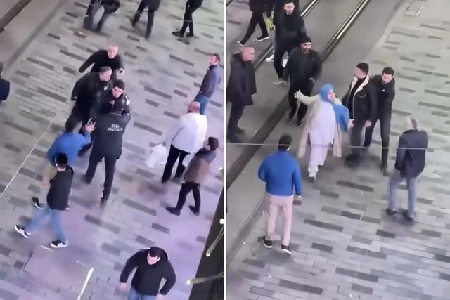 Mahmut G.'nin de dahil olmasıyla büyüyen kavgada, taraflar birbirlerine tekme ve yumruklarla saldırdı. Çevredeki vatandaşların araya girmesiyle kavga sona erdi. Yaşananlar ise cep telefonu kamerasına yansıdı.